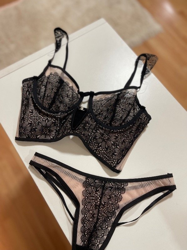 Conjunto bordado en tul con encaje y aro, mas less con tiras y se puede ajustar la espalda