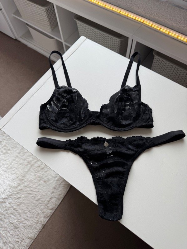 Conjunto de aro con abertura con brillitos en el encaje mas less ancha no regulable.
