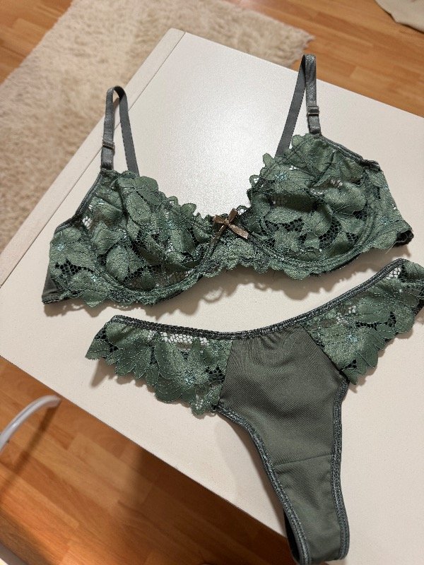 Conjunto oliva con aro mas less. Encaje suave y espalda de micro.