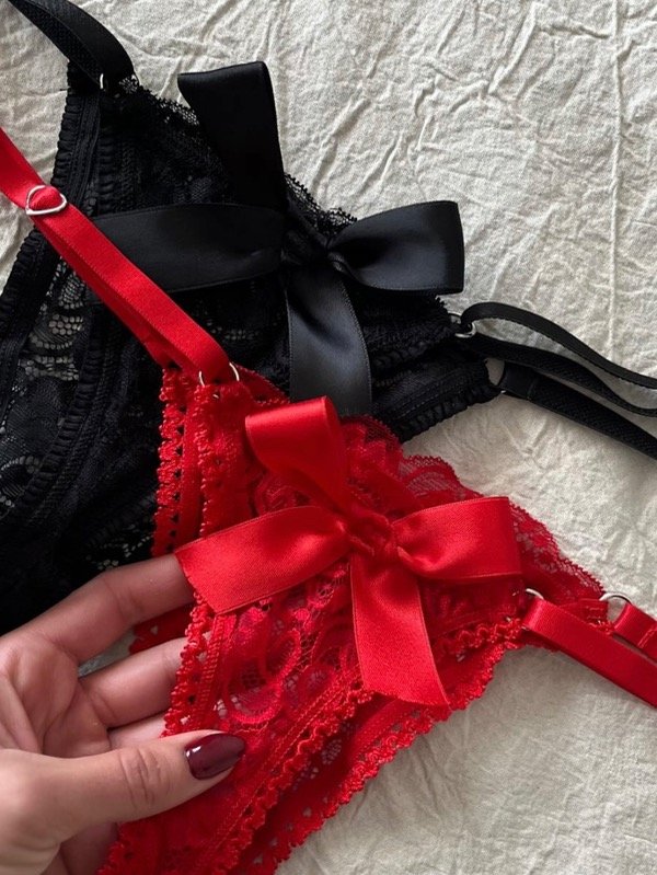 pack de less moño, viene una negra y otra roja esmeralda, con detalles de corazon. Regulan hasta el talle 48. No se guardan pedidos sin abonar.