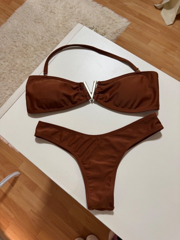 Bikini avio strapless con less en V.