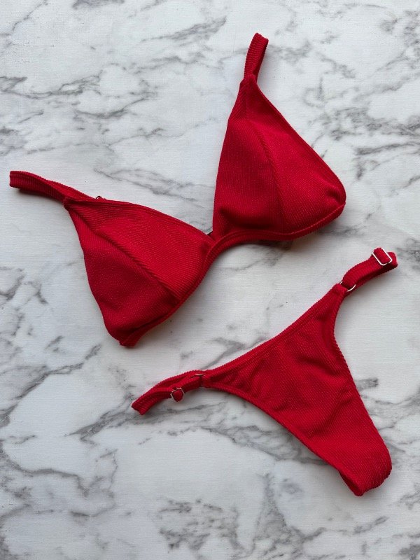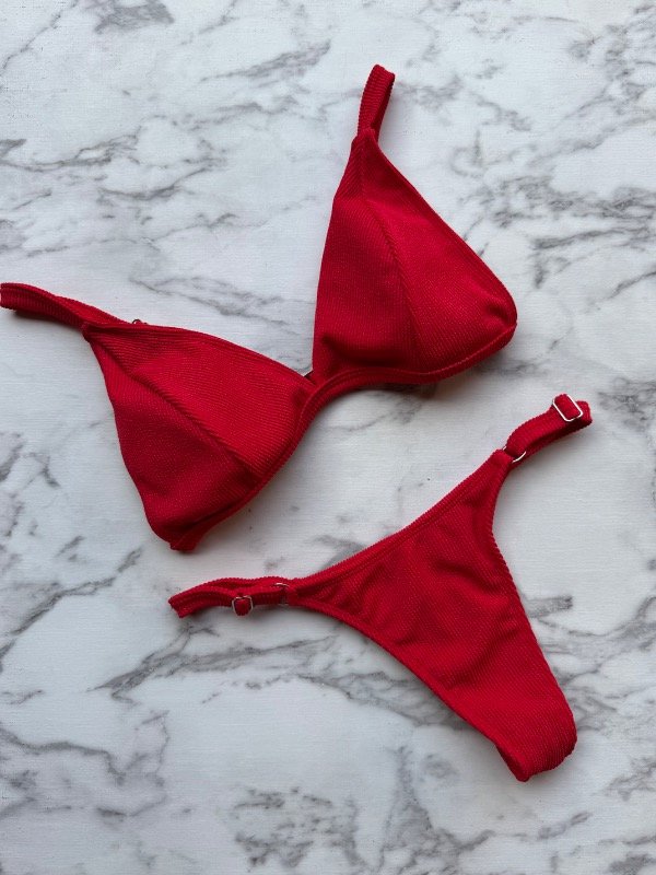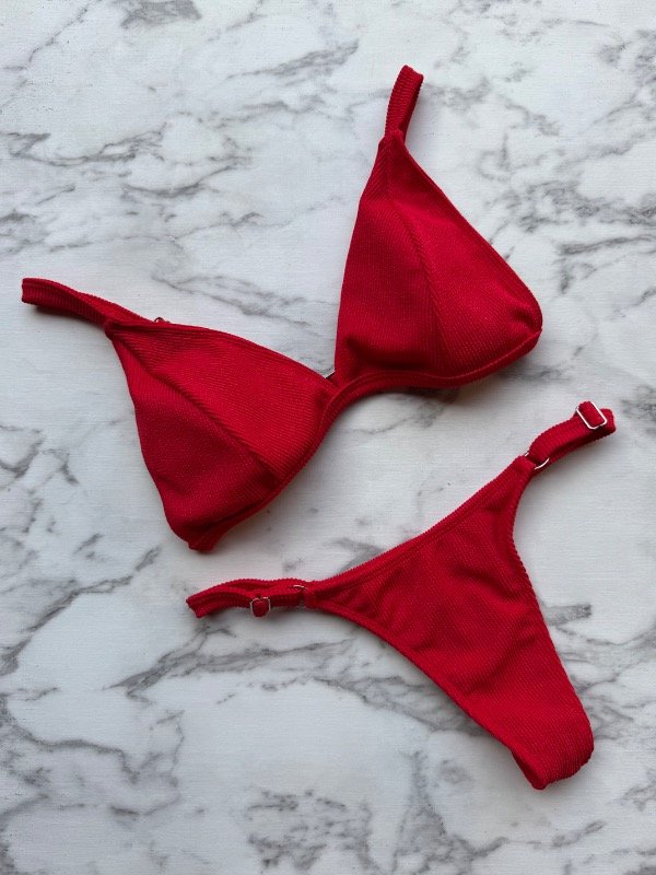 Bikini roja texturada con relleno desmontable y less. Toda regulable.’
