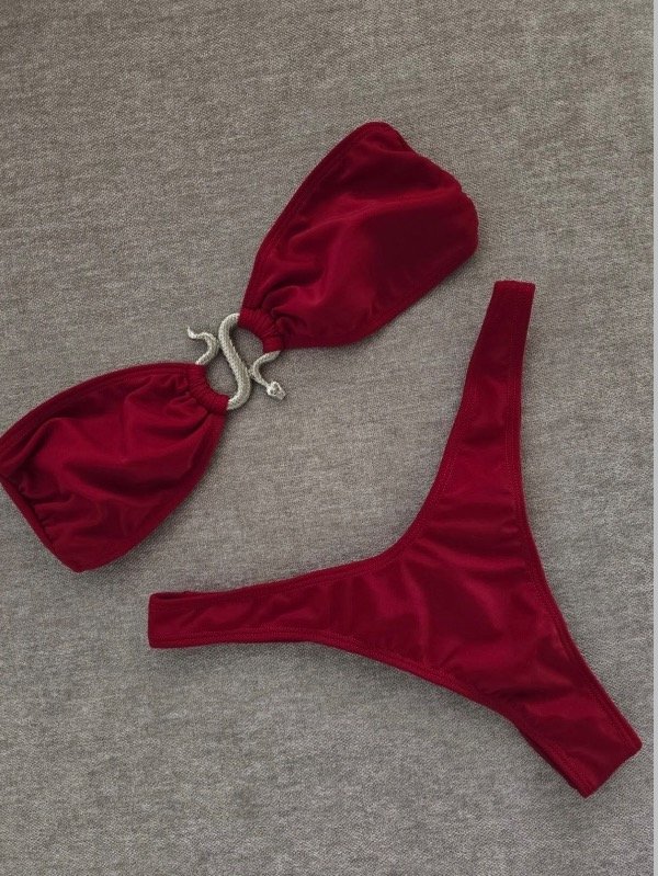 Bikini strapless con avio de serpiente y less en V