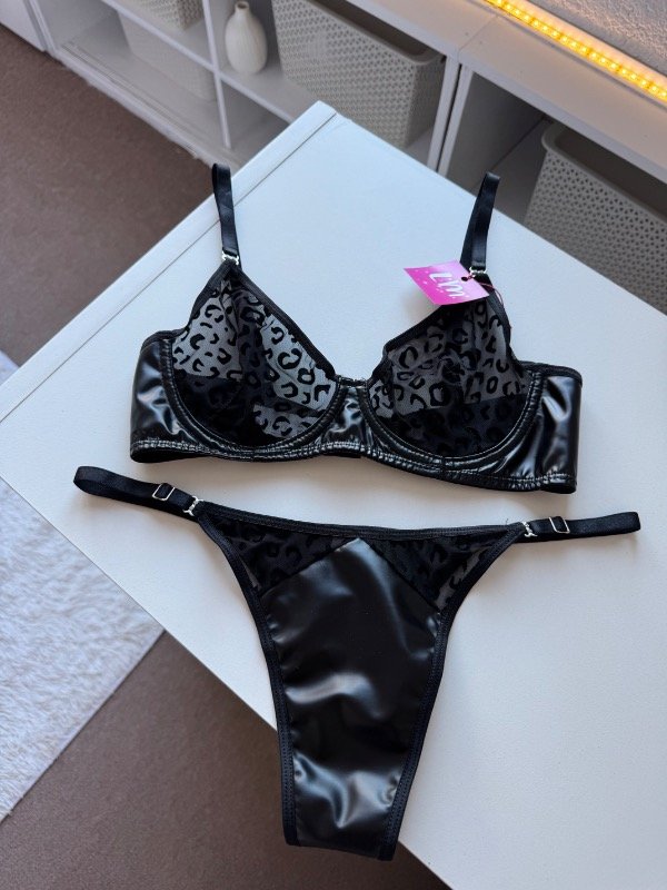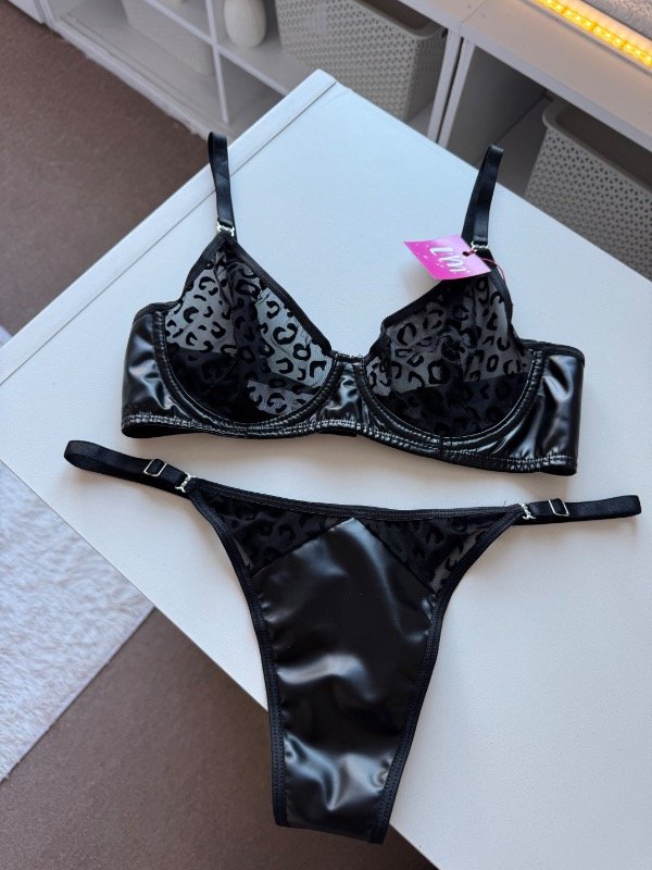 Conjunto print con aro y less regulable. Con detalle de cuero